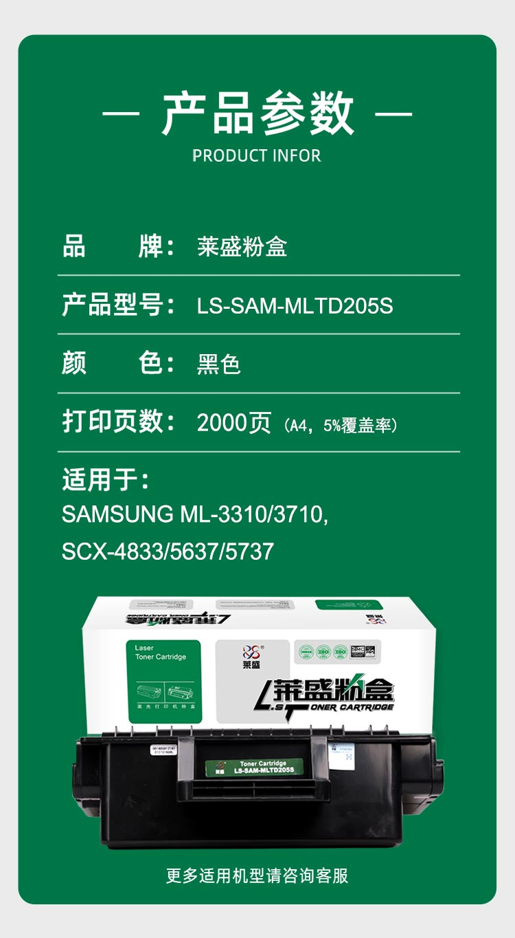 莱盛 LS-SAM-MLTD205S 粉盒 适用于三星ML-3310/3710 SCX-4833/5637/5737 支
